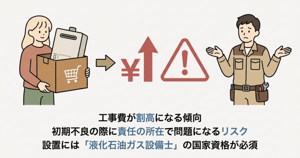 もし工事のみを依頼するなら、事前に型番がその家の設置条件(壁掛なのか据置なのか、排気方向は合っているか)に100%合致しているかを確認しましょう。
