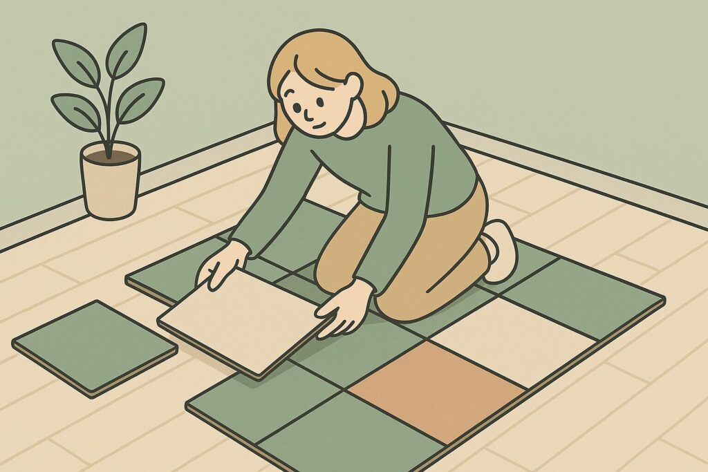 - 施工がカンタンなタイプもある:最近は「置くだけ」タイプや「貼ってはがせるシール」タイプが主流で、賃貸でも安心して使えるようになっています。原状回復もラクラクです。