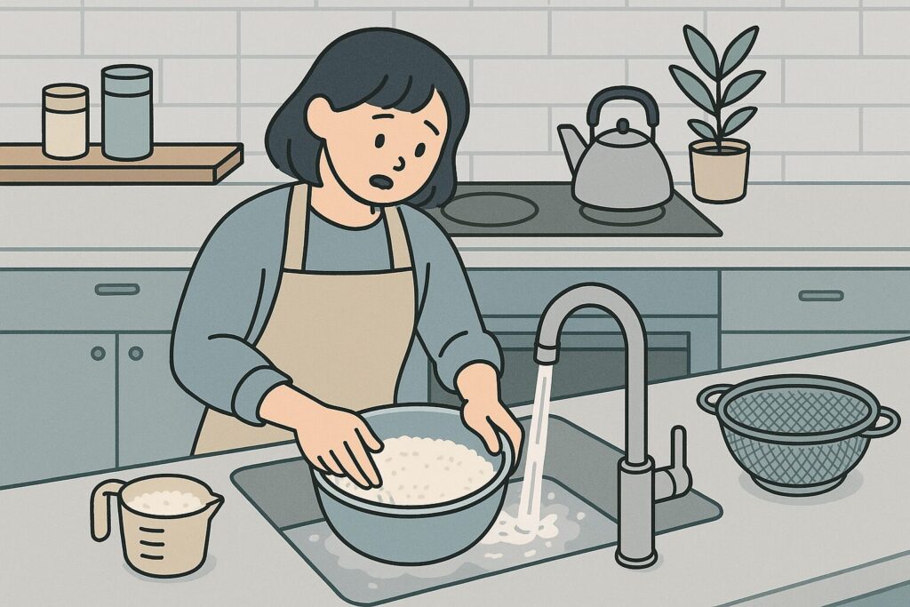 特に冬場は水が冷たく、お米が水を吸いにくくなります。最低でも30分(冬場なら1時間)は浸水させてから炊飯ボタンを押すと、ふっくら炊き上がりますよ。 - お湯で研いだり、炊いたりしていませんか?