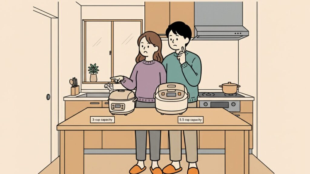 二人暮らしの炊飯器選びで、最初に悩むのが「3合炊き」と「5.5合炊き」のどちらを選ぶか、という点だと思います。