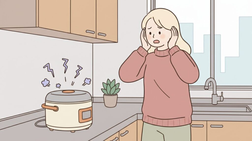 炊飯中に「ブーン」という普段聞きなれない大きな音がしたり、焦げたような匂いがしたりする場合も要注意です。内部のファンやモーター、ヒーターに異常があるのかもしれません。