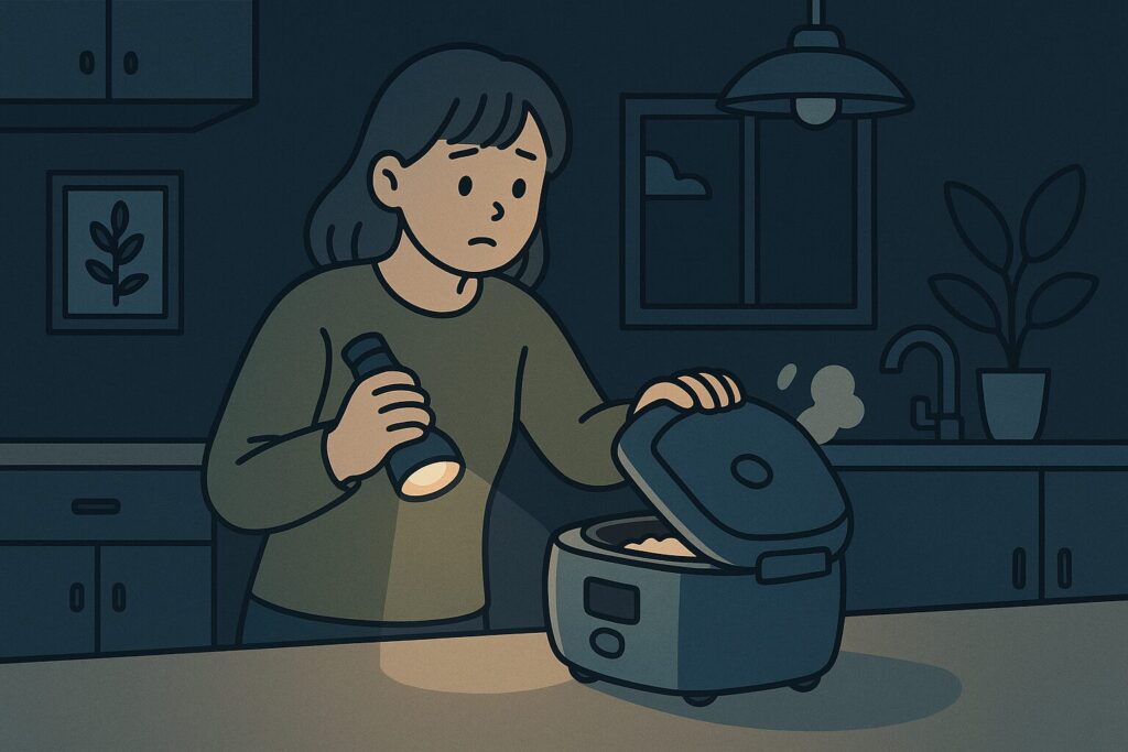 その場合は、電気が復旧した後に、この記事の前半でお話しした「水が残っているか」「ご飯になっているか」を自分で確認し、「早炊き」で炊き直すか、「保温」で蒸らすかの対処を取る必要があります。