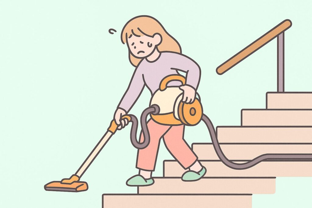 結局、「重い」「コードが邪魔」「体勢が不安定になる」という三重苦で、キャニスター型掃除機での階段掃除は、効率が悪いだけでなく、転倒のリスクが非常に高くなってしまうんです。