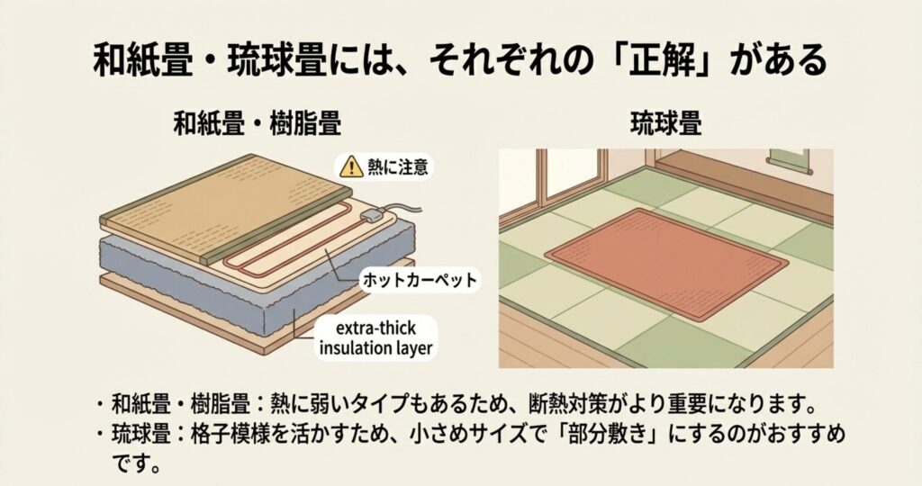 ここでは和室の雰囲気を壊さずに、足元からぬくぬく過ごすための基本を解説します。