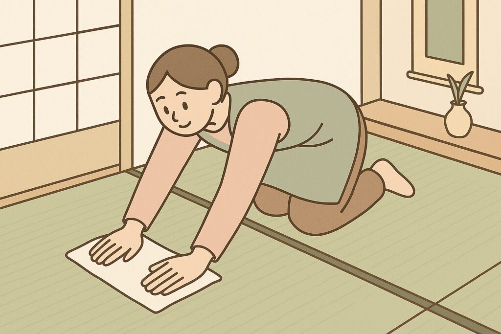 畳の皮脂汚れやベタつきが気になるとき、昔ながらの雑巾がけは有効です。ただしこれも「正しいやり方」を守ることが大前提です!