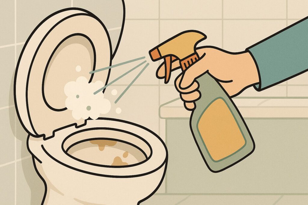 汚れが固着する前のまだ「軽い汚れ」のうちなら、中性の「トイレマジックリン」みたいなスプレーでサッと拭くだけで簡単に落ちるんです。