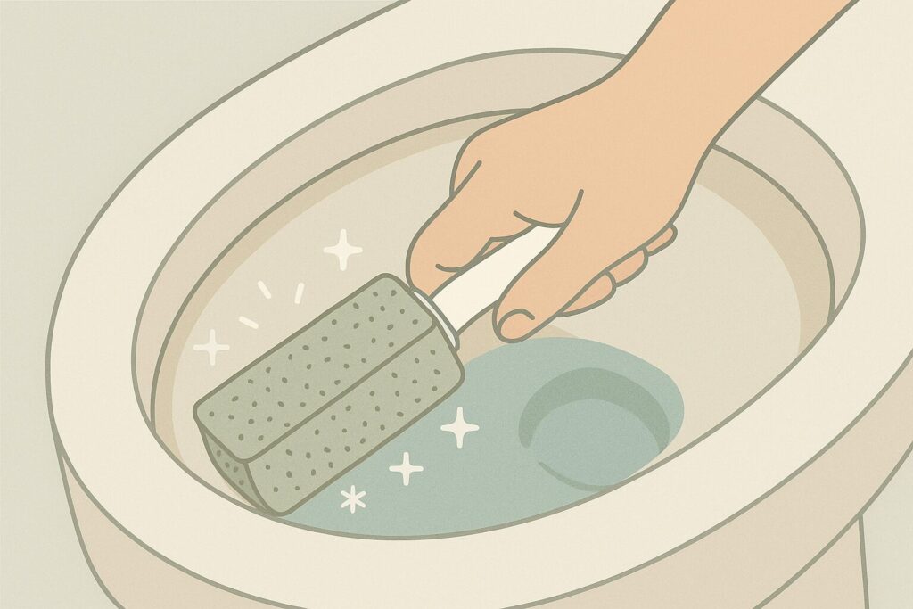これは天然の「軽石」でできたスティックです。薬品で落ちない尿石をこれでガリガリ削り落とす、まさに最終兵器です。