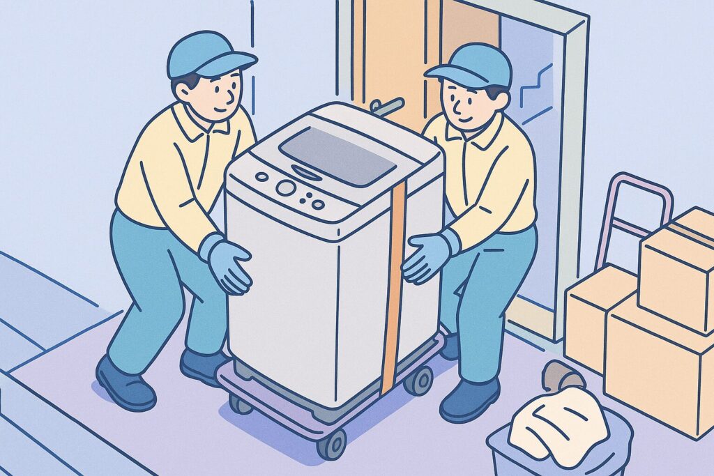 運ぶ前日までに、洗濯機内部やホースに残っている水を完全に出し切る「水抜き」という作業が必要です。これをしないと、運搬中に水が漏れて、他の家財や建物を濡らしてしまいます。