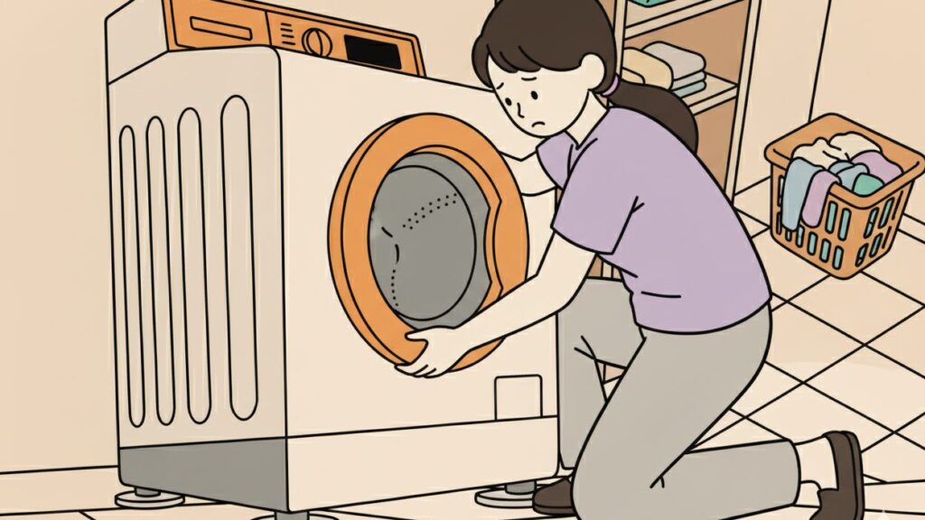 ドラム式洗濯機は乾燥機能が付いているモデルも多く、本体が非常に重いですよね。小型のものでも70kg以上、大型になると90kgを超えることも珍しくありません。この重さのため、一度設置してしまうと女性の力はもちろん、男性でも一人で動かすのは結構大変なんです。