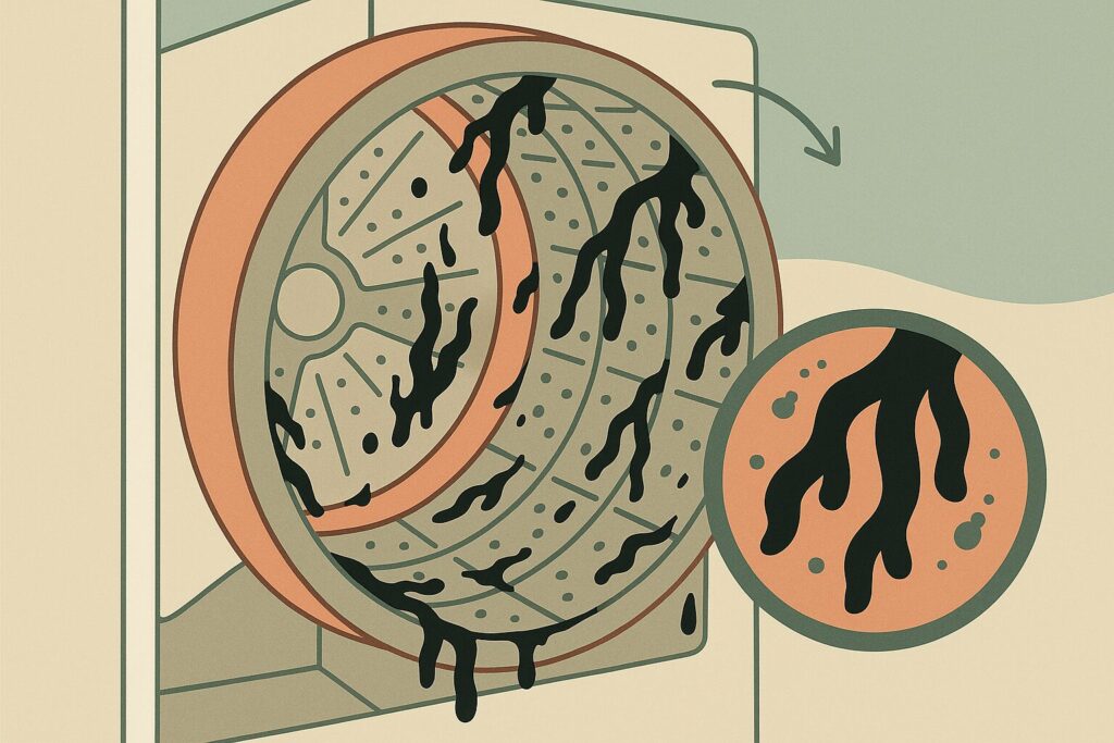 さらに、一見きれいに見える洗濯槽も、その裏側には洗剤の溶け残りや皮脂汚れをエサにしたカビがびっしり…なんてことも珍しくありません。そのカビが洗濯の振動で剥がれ落ちて、黒いカスとなって衣類にくっついてしまうこともあるんです。