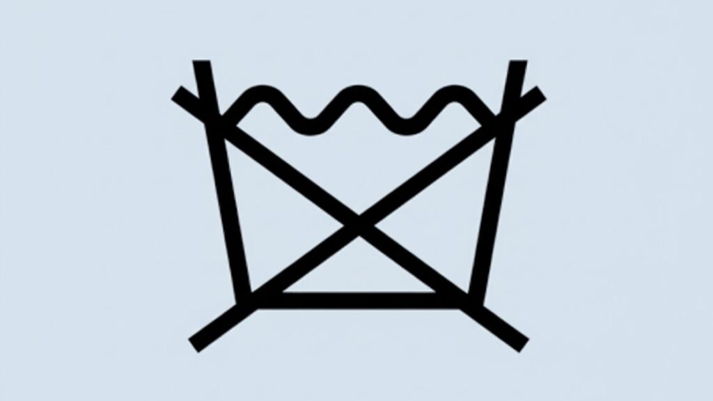 このマークは「家庭での洗濯処理はできない」という意味です。つまり、洗濯機で洗うことはもちろん、手洗いもできない、ということなんですね。