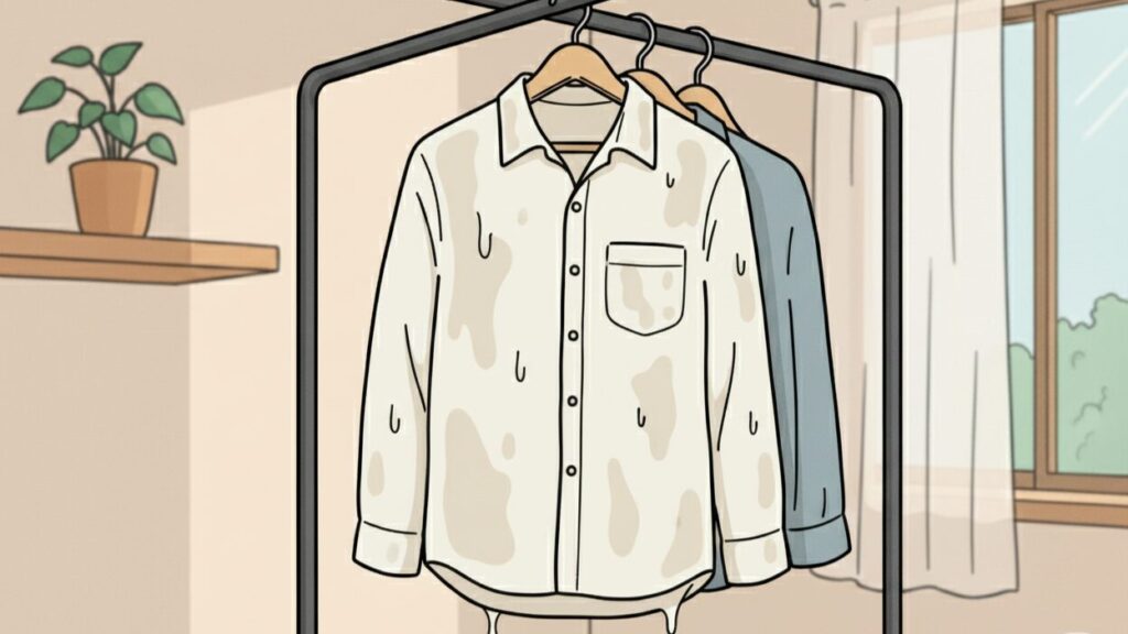 この干し方が特に向いているのは、麻(リネン)やレーヨンといった、シワになりやすいけれど比較的乾きやすい素材のシャツやブラウスです。洗いざらしの自然な風合いを楽しみたい衣類にはぴったりですね。