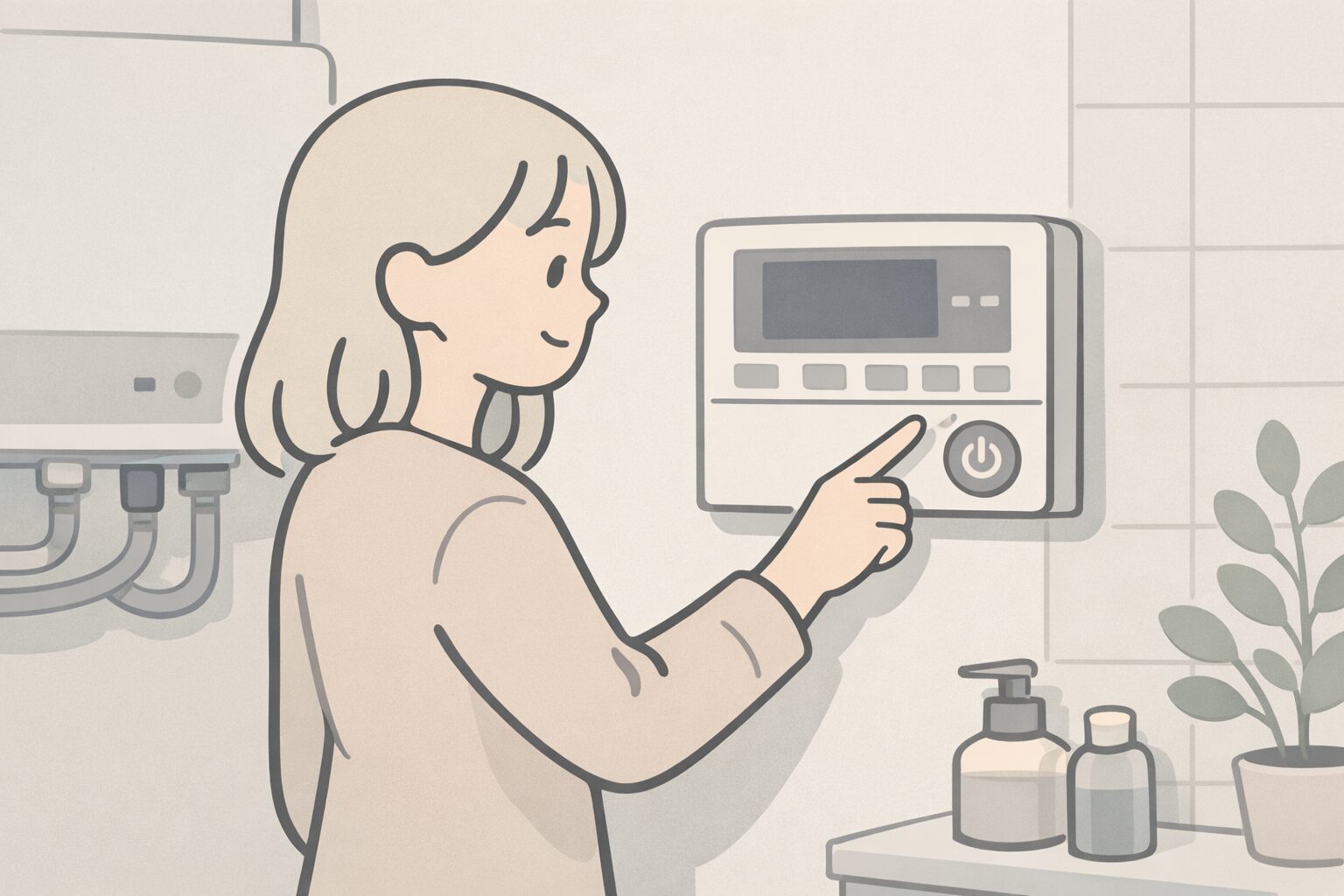 今の給湯器はマイコン制御なので、スイッチがオンになって初めて、温度設定や水量センサーが「お湯を出す準備」を整えてくれます。