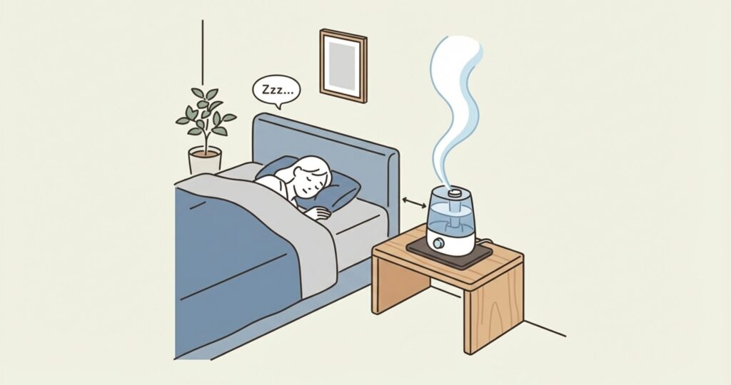 運用のコツ 寝る前に加湿し、就寝時は「弱」にする 睡眠中の騒音ストレスを最小化