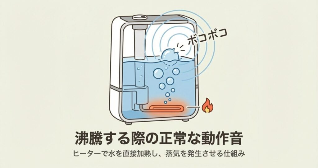 象印の加湿器から聞こえるボコボコという音、これの正体はズバリ「沸騰」そのものです。