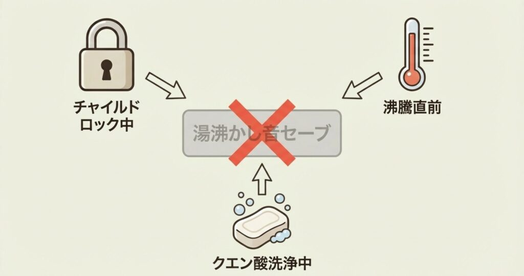 「湯沸かし音セーブ」機能、これは加熱時の音を抑えてくれる便利なボタンなのですが、たまに「あれ、押せない?」と戸惑うことがありますよね。これにはいくつか理由があります。