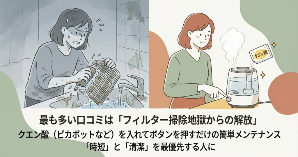 一番目立つのは「もうフィルター掃除地獄から解放された!」という歓喜の声ですね。